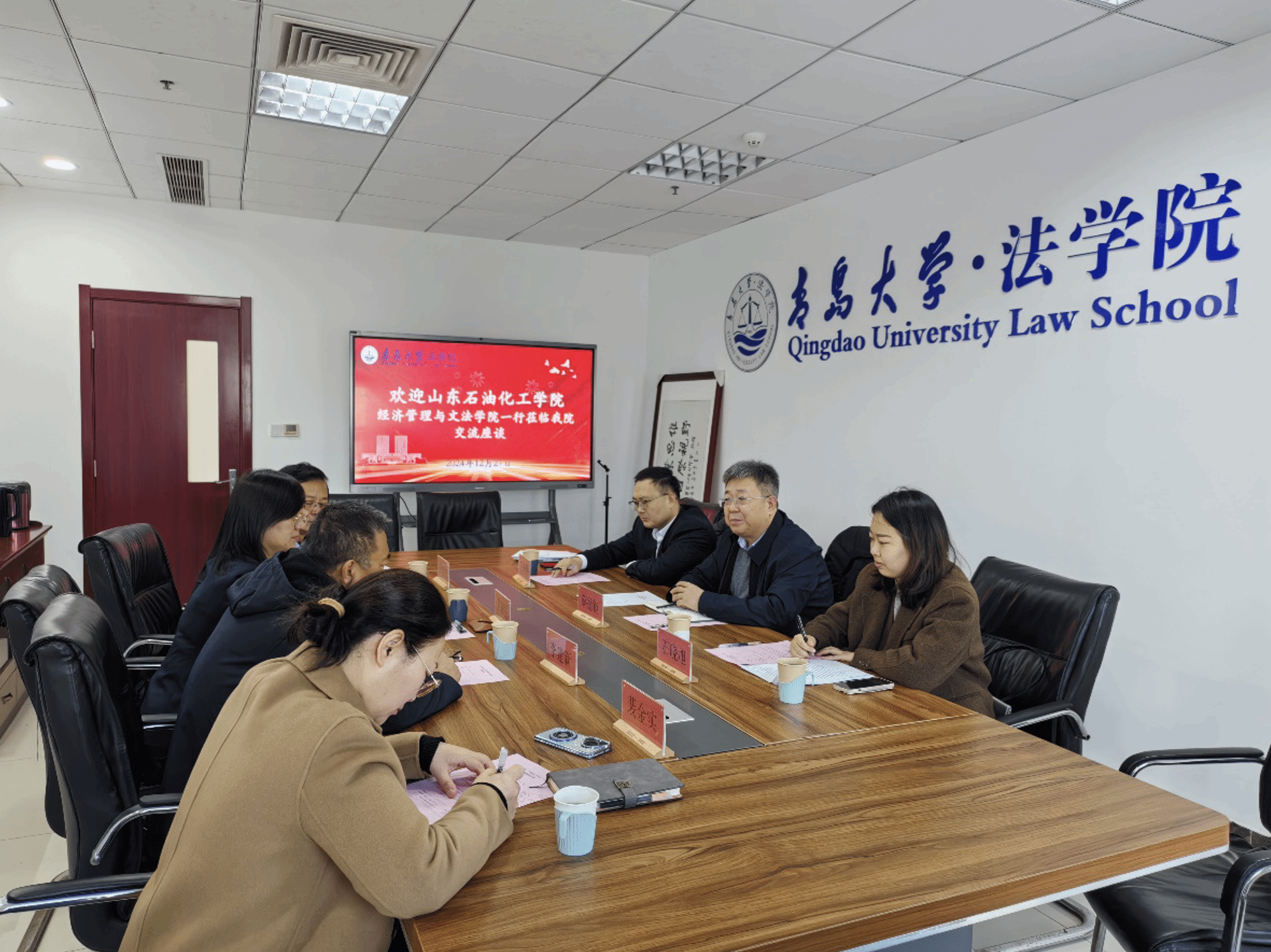 青岛大学法学院党委书记李建新、院长蔡颖雯、副院长董桂武、学科与研究生培养办公室主任裴金实,青岛大学经济学院院长吕学梁、副院长李聪、研究生教学办公室主任刘寒,青岛大学商学院副院长张磊,青岛大学文学与新闻传播学院副院长(主持工作)张文彦、科研与学科建设办公室主任张丹,四个学院相关领导先后给予热情接待。考察交流期间,我院与青岛大学相关学院就法学学科、应用经济学科、管理科学与工程学科和中国语言文学学科的学科建设、科学研究、专业建设、人才培养等方面开展了深入交流,并在科学研究、科研平台、兼职硕导聘任、硕士生联合培养、学生考研和优秀青年博士引进等多个方面达成了初步合作意向。