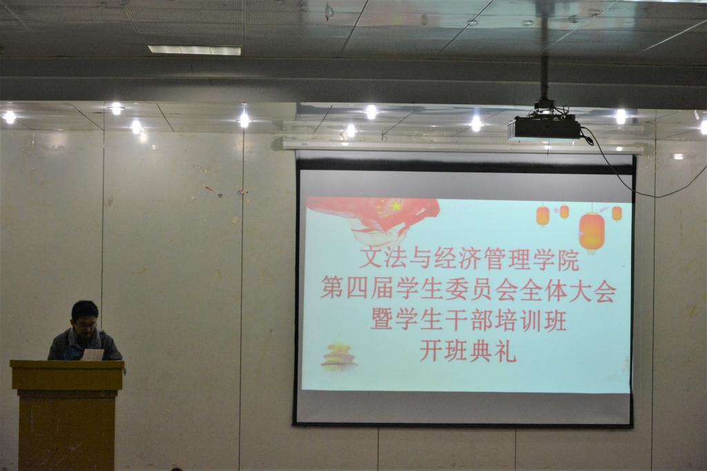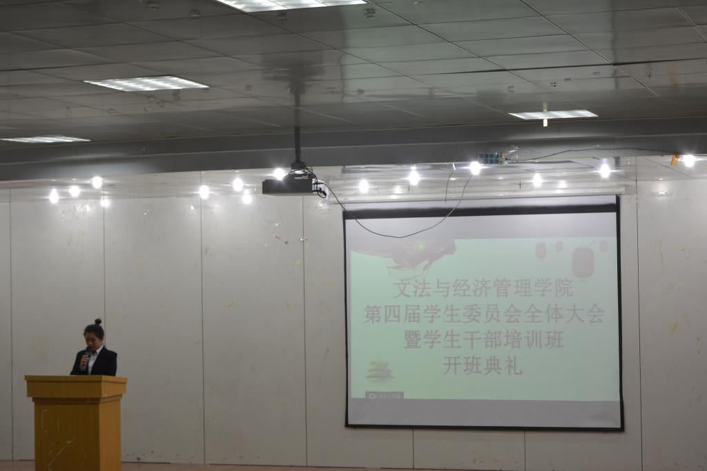 为促进我院学生会长远发展,提高院会学生干部工作能力, 11月3日晚,我院第四届学生委员会全体大会暨学生干部培训班开班典礼在新教五楼报告厅举行。我院学工办主任仝世涛,辅导员老师田旻、李迎娣、李昕如,第四届学生委员会全体成员出席了本次活动。