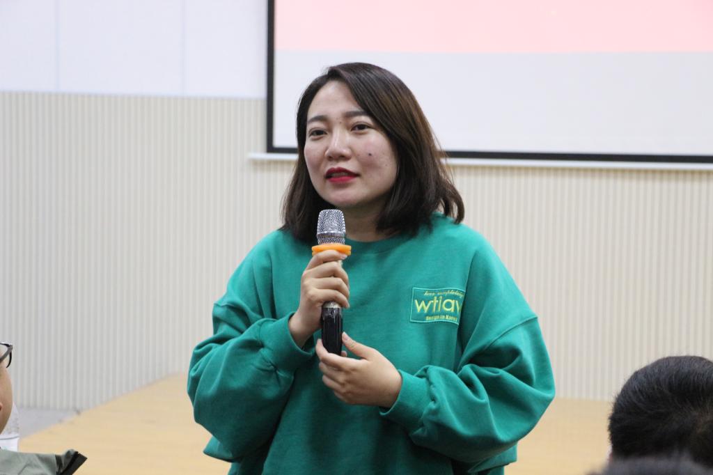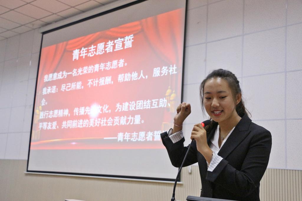 王诗玮作为新一届文经院青年志愿者协会主席,发表就职报告。她表示一定不负众望,努力完成现有工作,为我院青年志愿者协会谋求更大发展。接着,王诗玮带领全体干事进行志愿者宣誓。