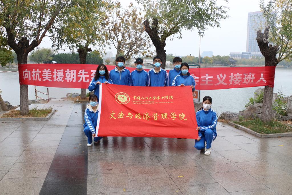 荟萃湖畔忆衷情,红色基因代代传。10月31日,我院在石大校区荟萃湖周边举行晨跑活动。学生代表首先进行抗美援朝诗朗诵,诵出一曲英雄壮歌;随后,组织同学们有序晨跑,步伐有力、整齐划一,在晨跑过后合影留念。