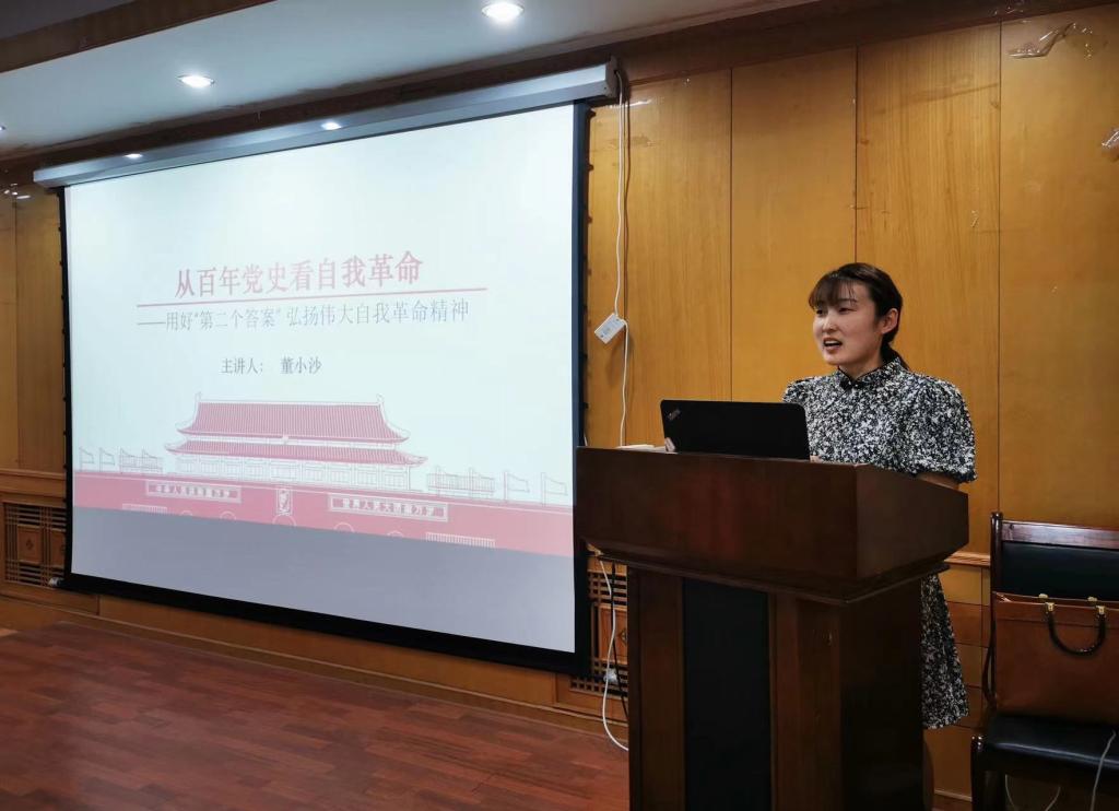 董小沙以《从百年党史看自我革命——用好“第二个答案”弘扬伟大自我革命精神》为题,深刻阐述了中国共产党跳出历史周期律的两个答案和百年党史中的六次自我革命,阐释了刀刃向内党的自我革命永远在路上的必然性。