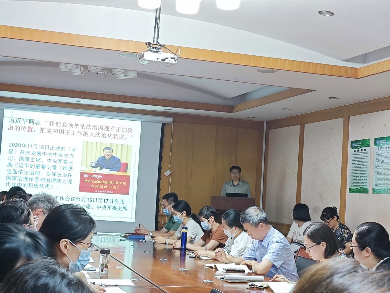 为学习宣传贯彻党的二十大精神,进一步推动习近平法治思想走深走实,不断筑牢树立法治理念、强化法治思维,6月26日下午,我院文法党支部书记刘青山以“培养法治思维,提升工作能力”为主题,为支部全体党员进行宣讲。