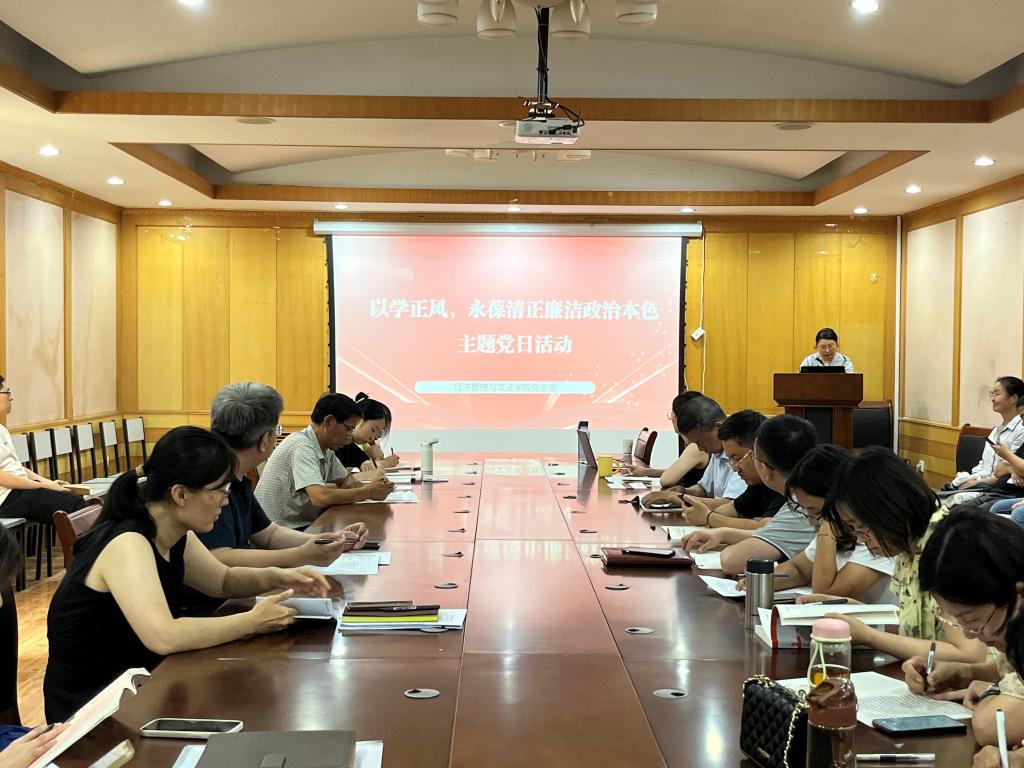 7月20日,我院党总支组织全体党员在经管楼209会议室开展“以学正风,永葆清正廉洁政治本色”主题党日活动。