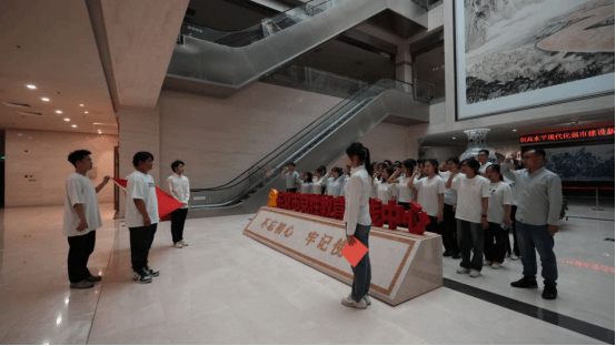 在入党宣誓区,全体党员面向党旗,学生代表王睿同学带领党员们庄严地重温了入党誓词,表达了对党的忠诚和对革命事业的坚定信念。