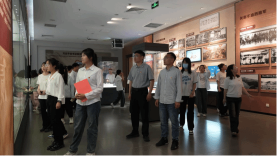 在解说员的带领下,党员们先后参观学习了中共百年党史展、东营地方党史展、东营党建工作展等,一张张珍贵的历史照片,一幕幕可歌可泣的感人故事,再现了中国共产党走过的百年历程,全体党员认真聆听解说员讲述,共同追随先烈脚步,接受革命传统教育洗礼,强化初心使命。