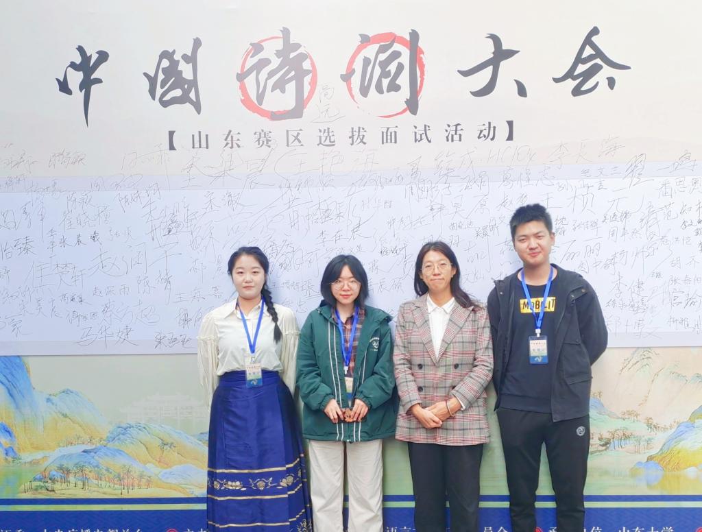 根据教育部语用司《关于委托开展<2024中国诗词大会>选手推荐选拔工作的函》要求,《2024中国诗词大会》山东省赛区现场选拔赛于11月4日在济南如期举行。中文系王艳老师带队,2020级汉语言文学专业李程翔、汉语国际教育专业翁梓元、张然然三名学生参加了本次大赛。