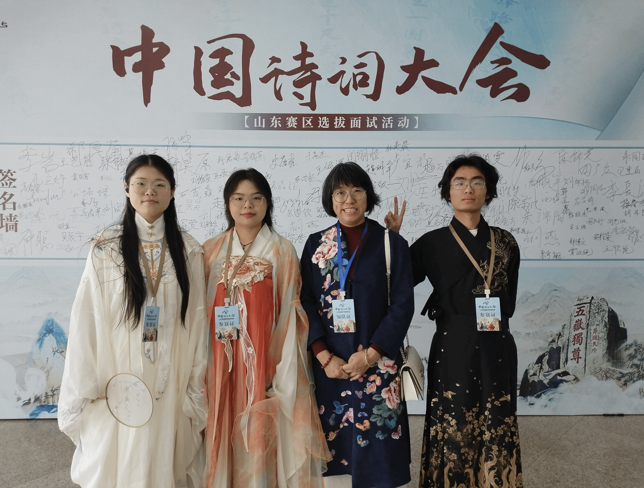 3月22日,《2025中国诗词大会》山东赛区选拔面试活动于中国海洋大学崂山校区圆满举行。我院中文系教师王艳带队,2022级汉语言文学专业梁童丽、王悦和2023级建筑环境与能源应用工程专业徐远航代表学校参赛。