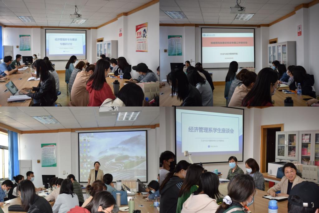 学生座谈会上,对学生代表们提出的课堂教学、实验实习、考研考证、校园环境、文体生活、疫情防控等相关想法意见,经济管理系室主任予以耐心解答。