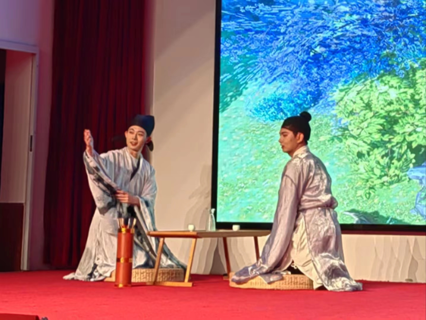 开幕式在行云流水、蜿蜒旋回的民族舞蹈《燕无双》中拉开帷幕;沁人心脾的古筝表演《渔舟唱晚》,让观众感受到王勃《滕王阁序》中千古流传的诗句意境;唯美动听的歌曲《吹梦到西洲》,表达了“南风知我意,吹梦到西洲”的思绪;汉服礼仪展演《春服既成》生动地展现了古时上祀节的风俗与成人礼的礼节,让观众跨越千年历史,感受汉服礼仪之美;诗歌朗诵《亲爱的祖国,请听我们说》,激励同学们做传统文化的传承和弘扬者;古风古韵的独舞《苏幕遮》,优美的舞姿与衣袂飘然的汉服交相辉映,仿佛春景里流动的国画般令人陶醉。精彩纷呈的节目,让同学们更加深刻的体会到传统文化的博大精深。