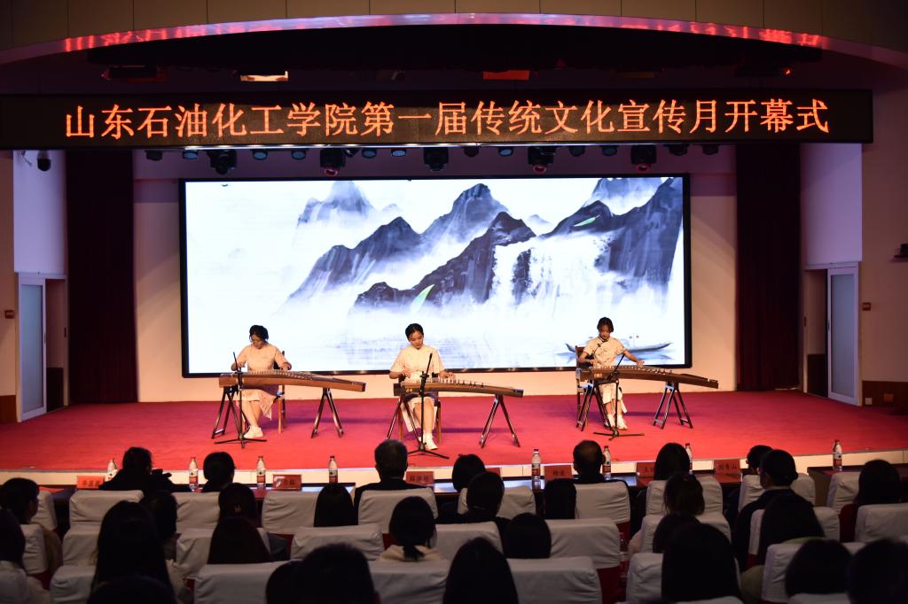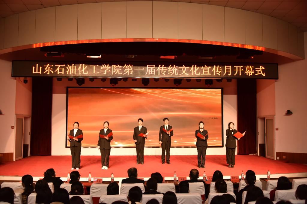 溯千年风雅,扬古今文化。为激发学生学习国学文化知识的热情,增强学生对中国优秀传统文化的热爱,提高学生文化素养,营造校园文化氛围,经济管理与文法学院举办“大美中国·山石清音——山东石油化工学院第一届传统文化宣传月”活动。4月3日晚,我院在100号报告厅举办活动开幕式。学生工作处负责人王晓勇,宣传部负责人杨波,经济管理与文法学院负责人薛德枢、学院班子成员及师生代表共同观看了开幕式。