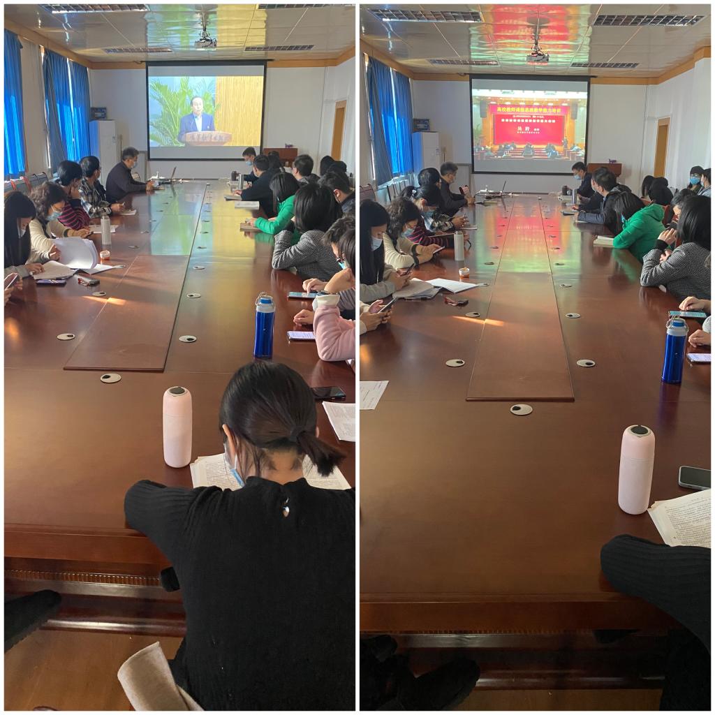 为进一步提高我院教师开展课程思政的能力与水平,深入实施《高等学校课程思政建设指导纲要》,切实提高课堂教学的育人水平,实现“立德树人”根本任务,11月24日下午,我院全体专任教师和教学管理人员在师专校区411会议室集体参加了全国高校教师网络培训中心举办的高校教师课程思政教学能力培训。