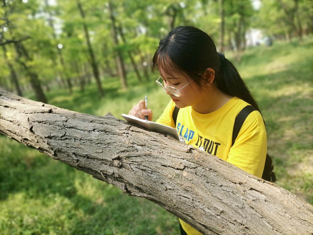 孤岛万亩槐林是亚洲最大的人工刺槐林,建成于1985年,现已郁郁葱葱,枝叶扶疏,是前一辈建设者用心血和汗水构建的绿色事业。林中随处可见木牌上的古韵民谣和神话传说,向同学们娓娓道出了它的历史。这片槐林不仅是自然的代表,更是当地人民对未来美好生活的殷殷期盼和展望。深入万亩槐海,同学们移步换景,临风柔阅,更思感恩:在“大河息壤”纪念碑亭感受黄河古道的发展变迁及河口的人文历史,在槐荫亭中感受父辈的舐犊情深和后人的孺慕之情。大家在孤岛槐林中品尝着五月的最后一口春,漫游槐香栈道,体会着深深的怀乡情谊,绿渐浓的蓬勃夏意以及心怀梦想、艰苦奋斗的槐林精神。