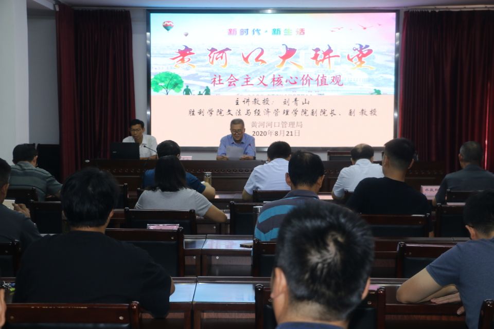 近日,我院教师刘青山受东营市社会科学界联合会委托,应黄河河口管理局和东营技师学院邀请,先后为黄河河口管理局和东营技师学院作了题为“社会主义核心价值观”的专题讲座,讲座为东营市社会科学界联合会举办的黄河口大讲堂系列公益讲座。