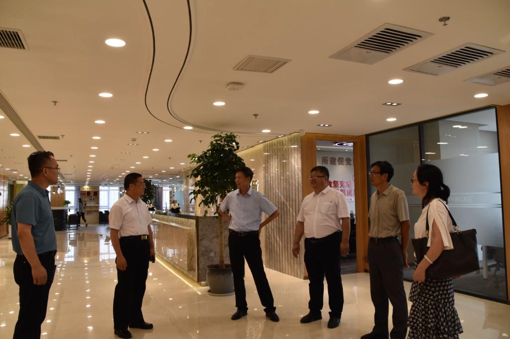 副院长刘青山一行参观了盈科(东营)律师事务所良好的办公环境,包括客户接待区、合伙人办公室、律师办公区、客服中心和律师直播间等。