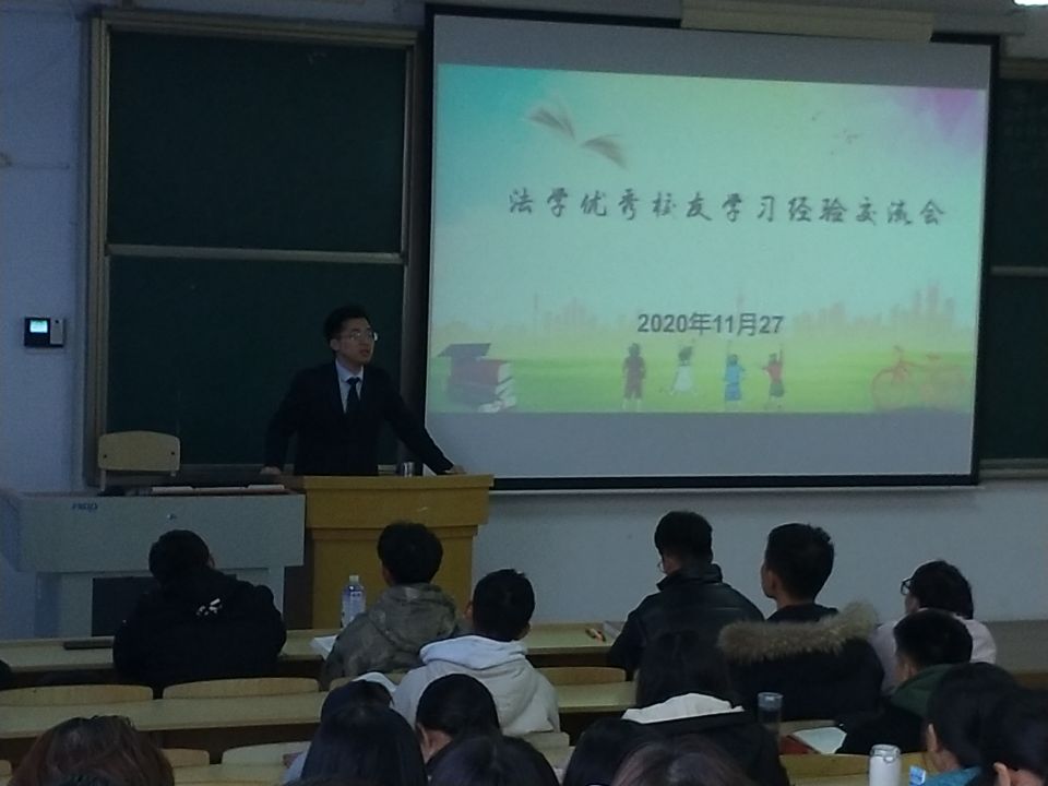 武鹏飞校友分别从大学生活如何规划、法学怎么学、法律职业资格考试和公务员考试这四个方面向同学们分享了他励志顽强的追梦心得和经验。