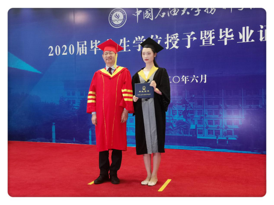 学位授予仪式上,2020届毕业生身着统一服装,依次有序上台,中国石油大学胜利学院院长、学位评定委员会主席刘衍聪教授为同学们颁发学位证书和毕业证书,正冠、拨穗并合影留念,完成庄重的学位授予和毕业证颁发仪式。