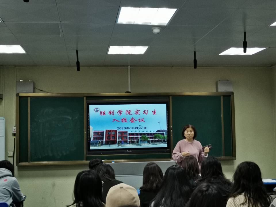 10月27日下午,胜利学院实习生入校会议在青山小学录播室顺利举行。本次会议由宋敏连老师主持,陈伟校长、刘秋霞主任以及各指导老师和全体实习生参加了本次会议。