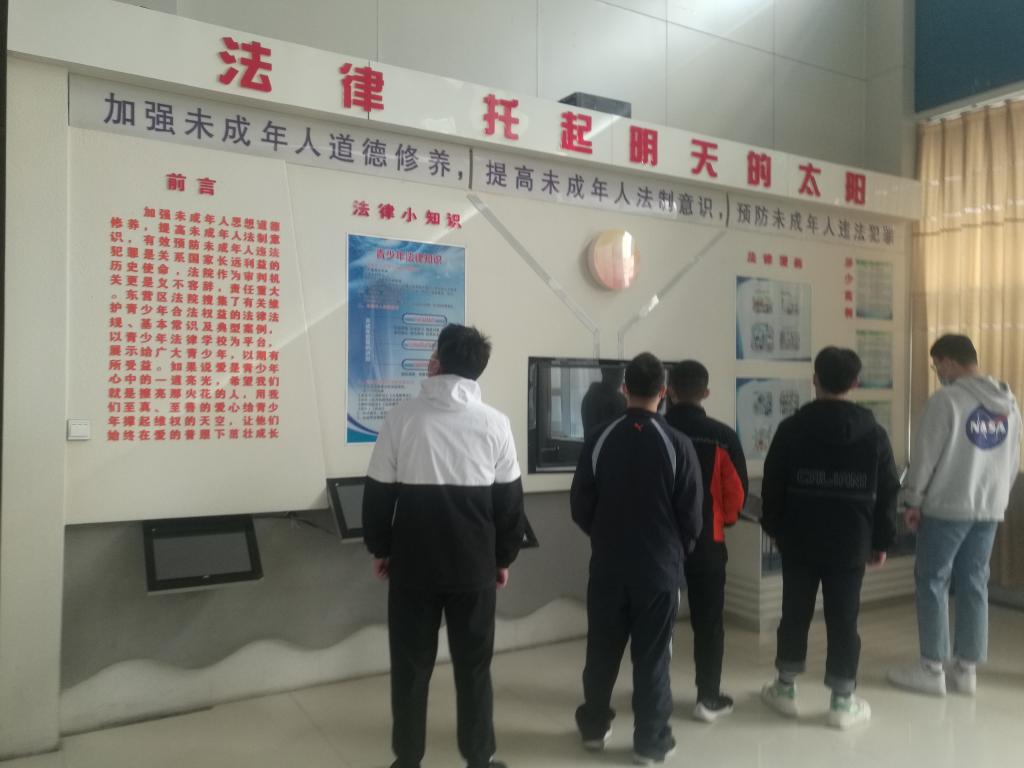 首先,同学们到东营区人民法院参观青少年法制教育基地,从“法律知识”、“法制漫画”、“典型案例”、“青少年常见犯罪”等方面着手,通过“远离毒品犯罪”、“远离网络诱惑”、“预防性侵害”、“抵制校园暴力”等四大板块,全面了解该基地在加强青少年法制教育,有效预防未成年人违法犯罪方面所发挥的作用。