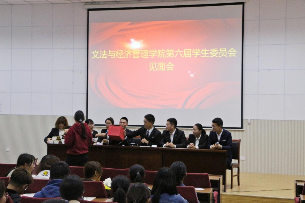 刘力榕副院长宣读了关于成立文法与经济管理学院第六届学生委员会的决定。