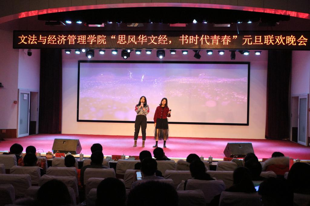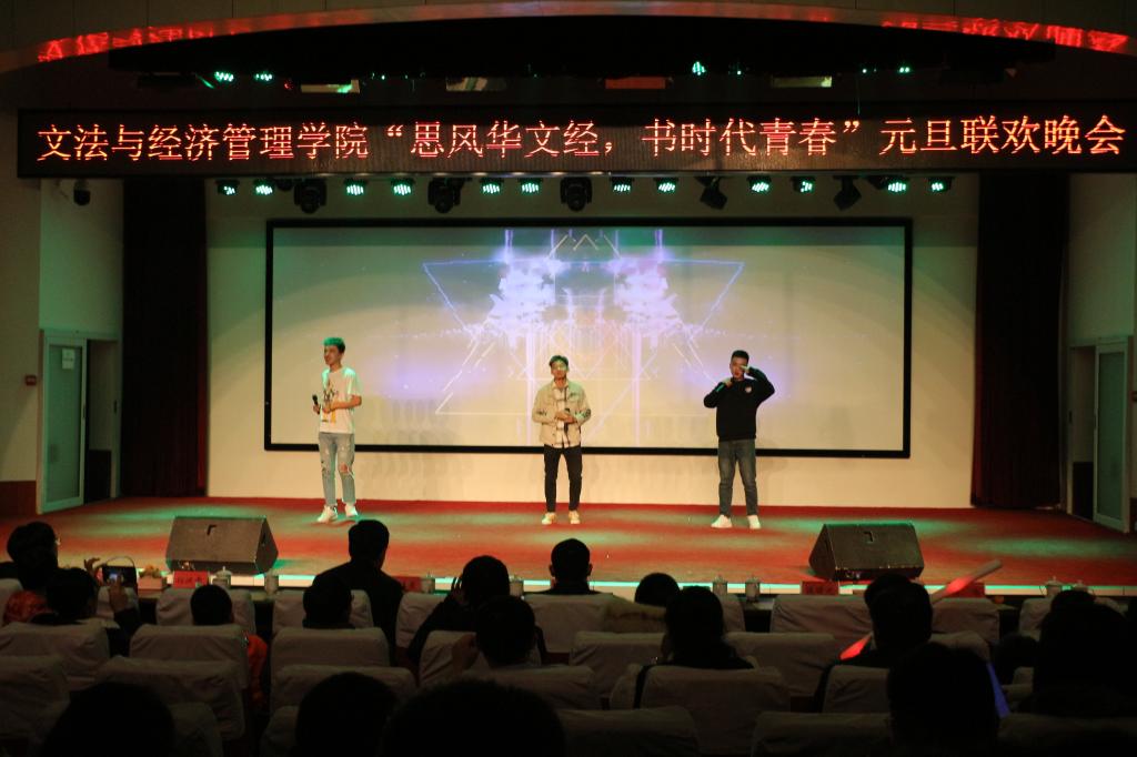 时间如白驹过隙,转眼间2020年元旦将至,为庆祝元旦佳节,进一步推进我院文艺活动的蓬勃发展,丰富校园文化生活,活跃氛围,给同学们一个展示自我风采的舞台,12月24日晚,我院在石大校区100号报告厅举行“思风华文经,书时代青春”元旦联欢晚会。校党委副书记孟昭亮、纪委书记王照杰、副院长王晓勇及部分教学院、职能部门负责人,我院领导班子成员,各专业教师及学生观看了此次晚会。