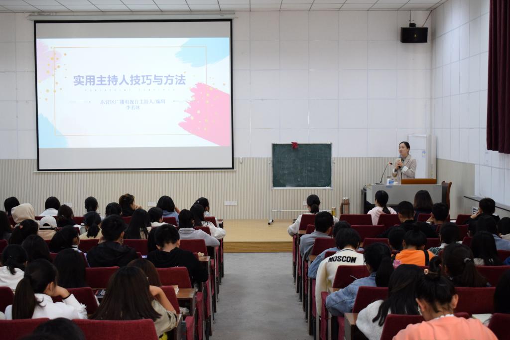 10月27号下午,东营区广播电视台主持人、编辑李若冰应邀来我院作“实用主持人技巧与方法”专题讲座。我院中文系主任刘娟以及部分师生参加了本次讲座。