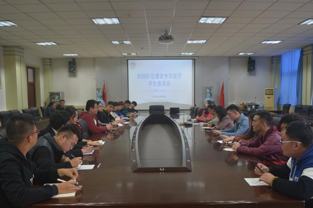 11月13日下午4点,学校教师队伍建设专项督导组莅临我院召开学生座谈会,高等教育研究与评价中心副主任巴永青、化学工程学院副院长于颖敏以及我院20位学生代表参加了本次座谈会。