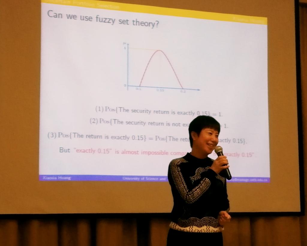 北京科技大学教授、博士生导师黄晓霞在会上作了题为“Uncertain Portfolio Selection with Background Risk”的研究报告,剖析了马柯维茨理论在具体运用过程中的局限性,介绍了一种新型应用于在风险不确定背景下有效进行投资组合决策的方法。