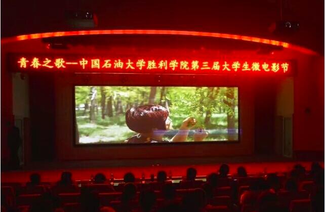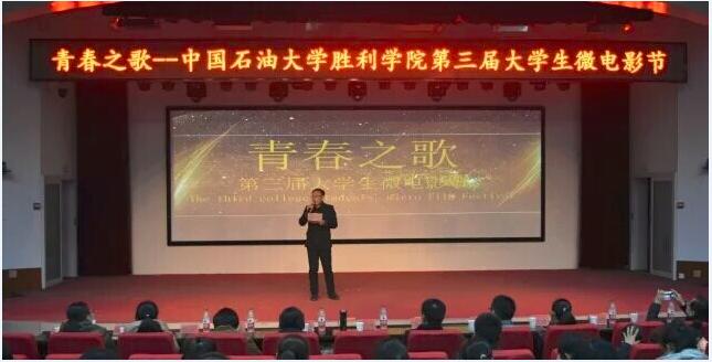 胶片凝固时间,镜头定格永恒。12月8日晚,中国石油大学胜利学院第三届大学生微电影节颁奖典礼在石大校区100号报告厅成功举行。东营市电影家协会副主席张贵新、教育与艺术学院党总支书记张超、我院党总支书记周向军、副院长王贞以及诸位老师莅临现场。当晚,现场座无虚席,观众们热情洋溢。