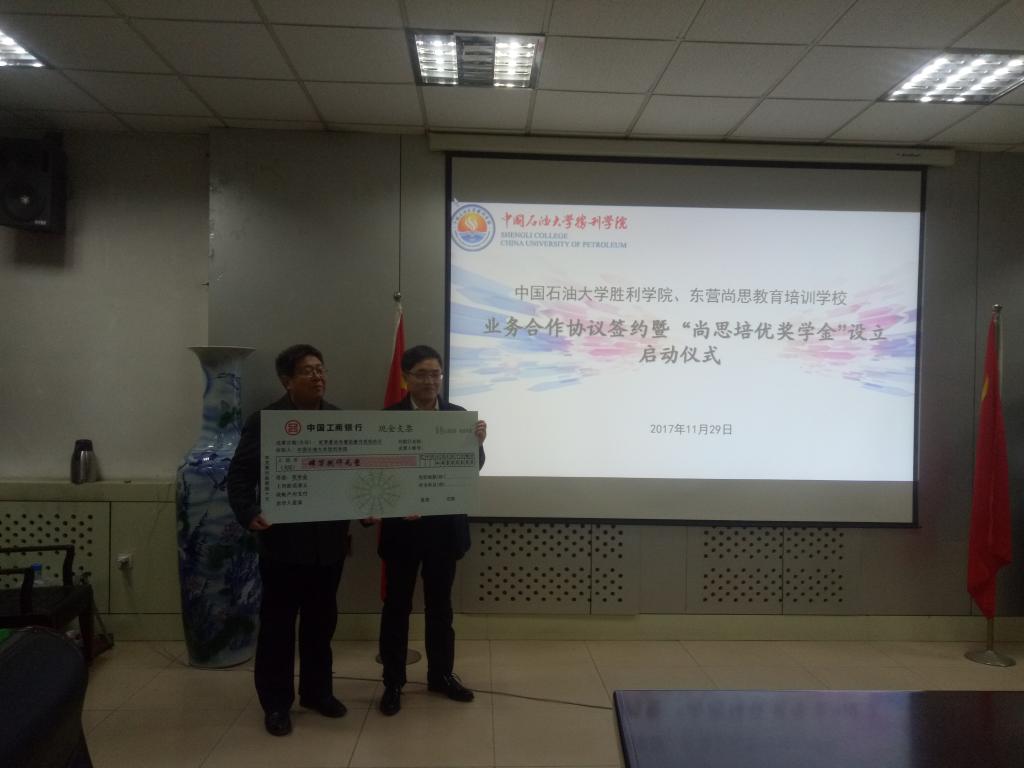 11月29日下午4时,我院与东营尚思教育培训学校业务合作协议签约暨“尚思培优奖学金”设立启动仪式在师专校区新教一楼会议室举行。我校副校长徐月利、学生工作处处长孙洪亮、东营尚思教育培训学校校长张兴昌、西城中心校区校长崔甜甜、教学总监王强、教师代表高国林、我院执行院长薛德枢、党总支书记周向军、副院长王贞、副院长刘力榕、学工办主任仝世涛、中文系主任刘娟、我院全体辅导员及部分学生代表参加了仪式。