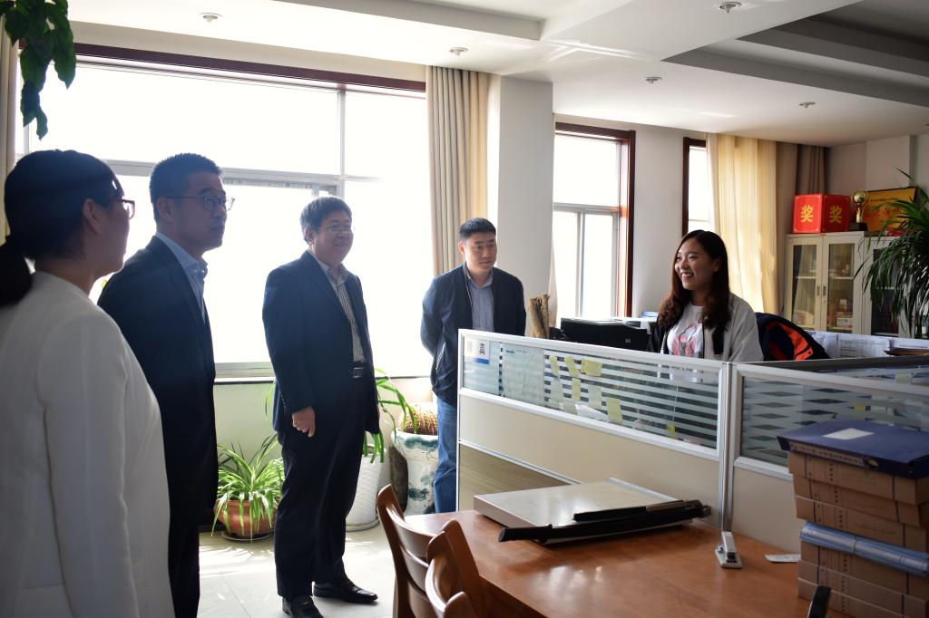 接下来薛院长一行前往中海石油东营石化有限公司,看望在此实习的文秘学生。在办公室里,薛院长与实习生张悦、吕茜等人进行了亲切的交谈,了解他们在行政管理岗、人力资源岗、政务管理岗等岗位上的工作情况,对学生们充实的实习生活和认真的实习态度给予了高度的赞扬。
