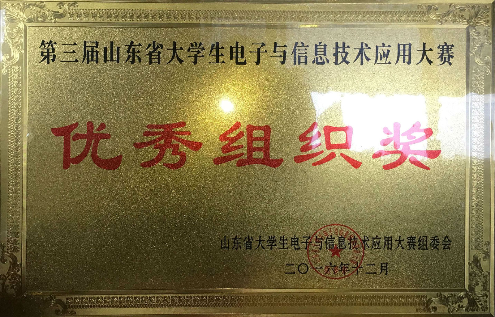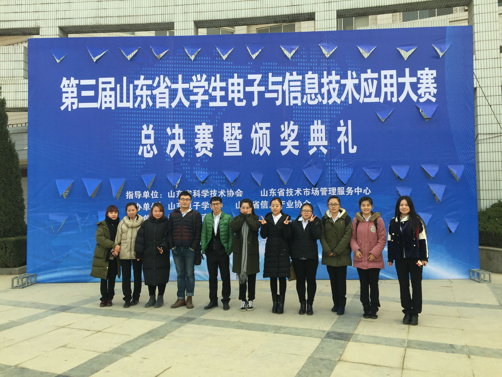 2016年12月18日,山东省第三届电子与信息技术应用大赛总决赛在济南大学圆满结束。我院组织11支队伍参赛,通过激烈的答辩角逐,最终获优秀组织奖1项,一等奖3项,二等奖6项,三等奖2项,优秀指导教师奖4项。其中一等奖队伍为:丽丽战队(队长赵庆丽)、猫老师战队(队长张蕊)和放飞的风筝(队长杨冽川)。