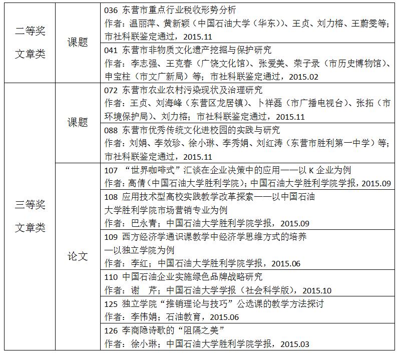 近日获悉,我院在11月12-13日举行的东营市第二十五次社会科学优秀成果奖评选会议中收获颇丰,多项教科研成果获奖,现将获奖情况汇总如下表: