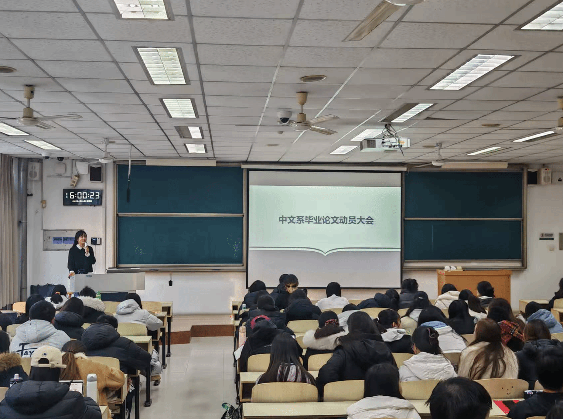 12月25日下午,我院中文系在四教110召开2026届毕业论文和毕业实习动员大会。会议由中文系主任易巧巧主持,中文系教师及2026届全体毕业生参会。
