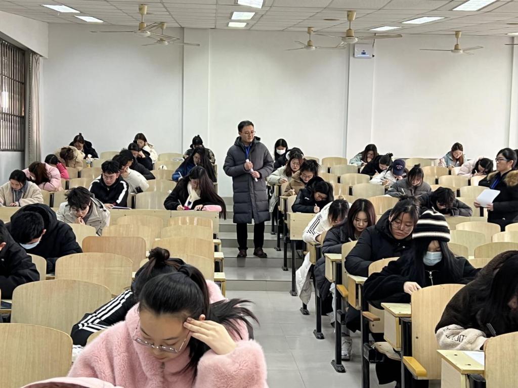 为进一步严肃考风考纪,2024年1月8日上午,由经济管理与文法学院党总支副书记代立军、副院长王家明、院长助理毕菲菲、教学科研办公室主任石晓旭以及各系主任组成的巡考小组开展了期末考试巡考工作。