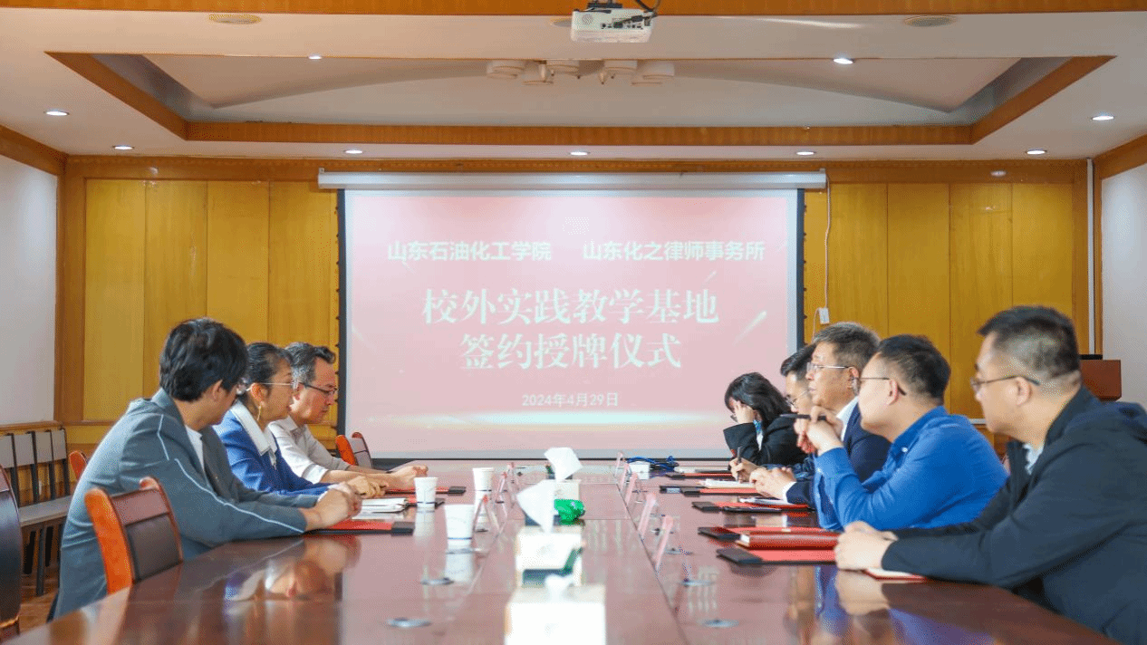 为进一步促进产教深度融合,推进法学系实践教学基地建设工作,加强人才培养与司法实务工作的衔接,2024年4月29日下午,我院于209会议室举行了实践教学基地签约授牌仪式。山东化之律师事务所主任律师刘亚莉一行三人,我院党总支副书记、副院长薛德枢、副院长王家明、法学系主任王博等五位老师参加本次仪式。仪式由法学系主任王博主持。