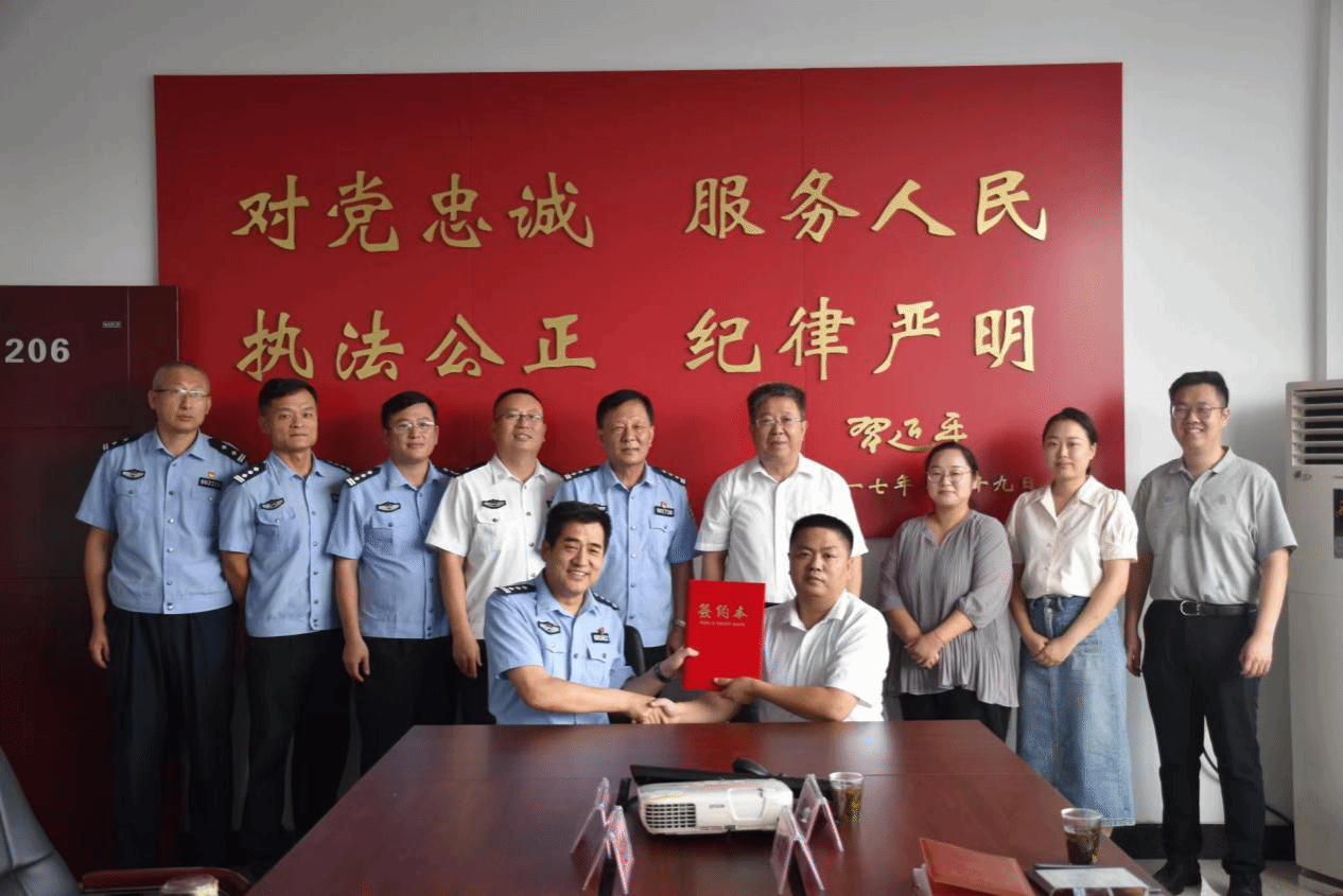 仪式上,副院长张朋程代表学院与滨东分局局长郭伟签订了实践教学基地协议。