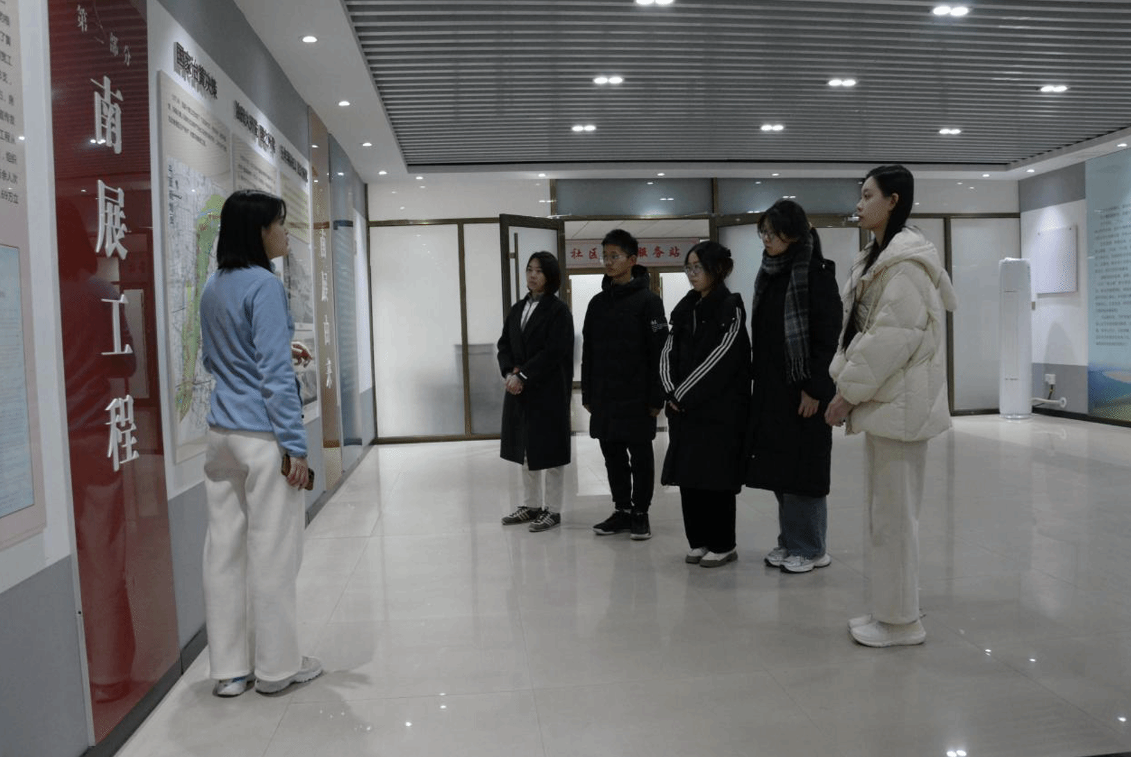 首先,调研团队来到杨庙社区南展区历史文化展厅进行调研学习。展厅内,介绍员仔细讲解了丰富多样的展品与详实生动的图文资料,全面展现了杨庙社区在生态保护、产业升级、文化传承、民生改善等多方面取得的辉煌成就。