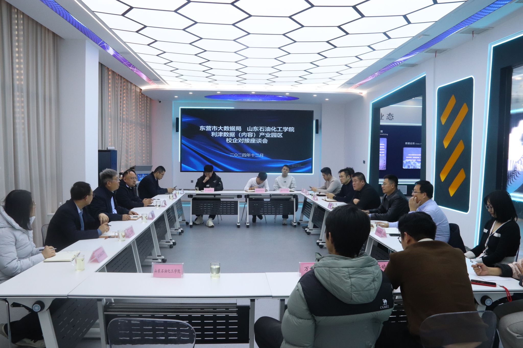 随后,学院一行与东营市大数据中心、利津县大数据中心及多家入驻企业代表进行了座谈交流。利津县大数据中心主任王卫国表示热烈欢迎,并重点介绍了利津县在数字经济领域的探索和实践。他表示,利津县充分发挥数据要素的创新引擎作用,围绕重点产业链加快数字化转型,实施了一系列数字赋能行动。利津数据(内容)产业园突出“引育留”三个重点环节,不断优化环境、强化服务、加大招商力度,持续扩大引进企业数量和质量,为县域经济高质量发展注入了新活力。东营市大数据局党组成员、市大数据中心主任刘传波介绍了我市在推动数字经济发展方面的政策措施和取得的成效。他表示,东营市高度重视数字经济产业发展,积极推动大数据与实体经济深度融合,打造了一系列具有示范意义的数字化应用场景。薛德枢对利津县在数字经济领域取得的显著成就表示高度赞赏,并介绍了学院在数字经济专业发展、人才培养、实践教学等方面的基本情况。他强调,我院将加强与利津县的联系,结合学院的数字经济专业优势,共同推进专业学科建设与实践教学基地的深度合作。