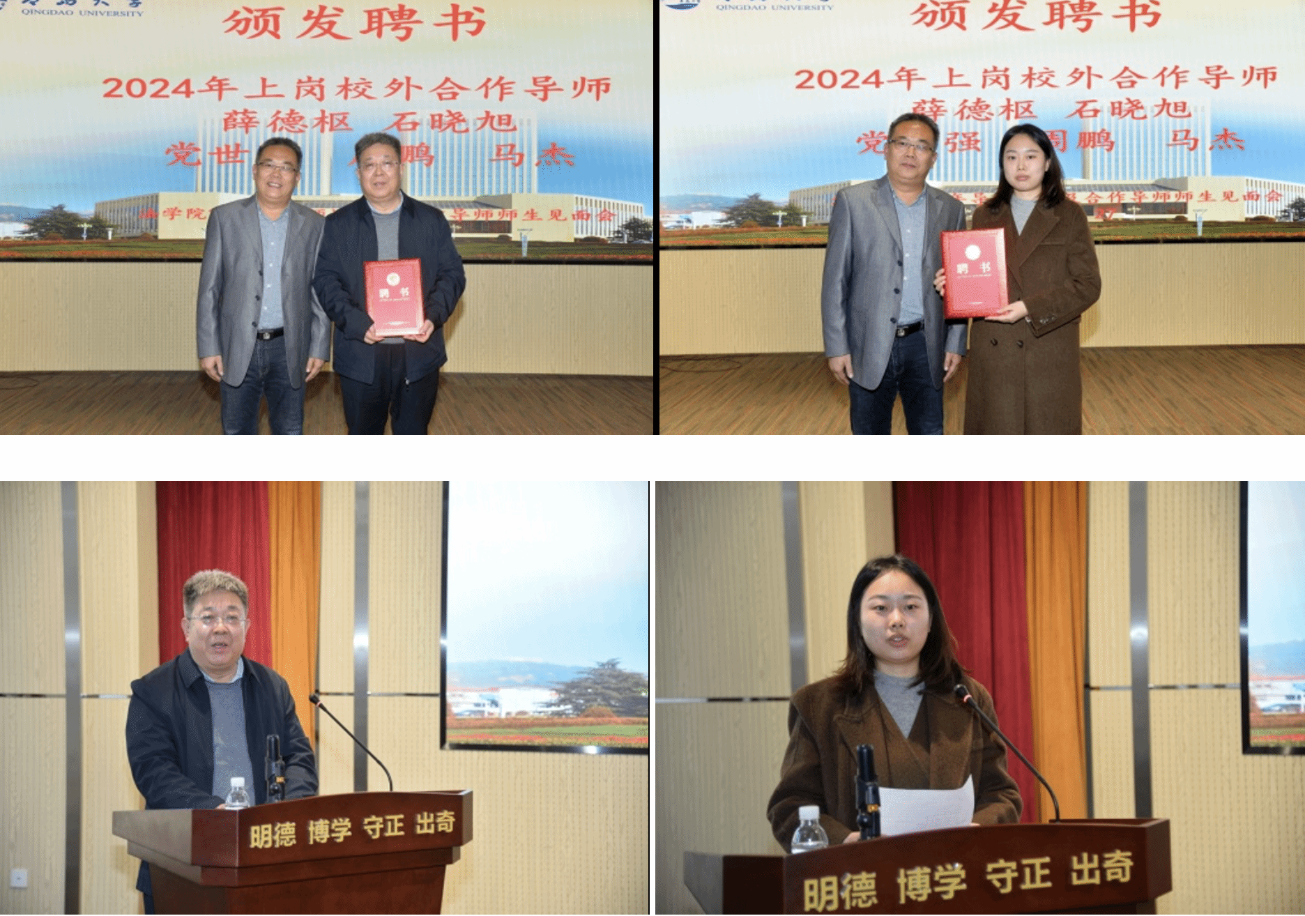 会上,薛德枢、石晓旭作为青岛大学法学院新聘校外合作导师先后作了发言,并听取了青岛大学法学院周峨春副教授作的培训辅导讲座。会后,薛德枢、石晓旭与各自指导的2024级法律硕士进行了互动交流。