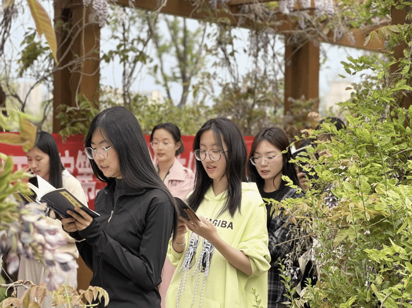 《孙子兵法》吟诵活动成为校园内一道独特的风景线。每天下午,朗朗的诵读声在校园的紫藤花架下响起。同学们手持《孙子兵法》,或齐声诵读,或两两对诵,抑扬顿挫的语调中饱含对经典的敬畏与热爱。通过吟诵活动,同学们对《孙子兵法》的内容愈发熟悉, “知己知彼,百战不殆”“兵无常势,水无常形” 等智慧理念在反复诵读中逐渐内化于心。
