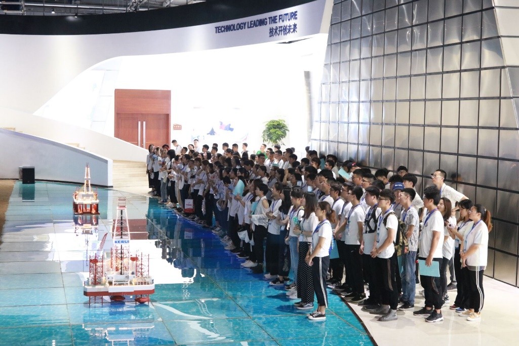 在科瑞集团的见习,主要分为参观与座谈两部分。在工作人员的带领下,全体师生参观了企业展厅,了解科瑞集团在油田技术服务领域、高端石油装备领域、全球营销服务网络的飞速发展,感受科瑞人热情团结的家文化与“缔造百年科瑞”的企业愿景。参观结束后,中东地区常务副总经理赵万举给大家带来精彩的讲座。赵副总经理有着六年工作经验,以自己的实际经历告诉同学们要有深切的爱国主义,以积极的心态去挑战自我,同时给同学们带来就业选择方面的建议。他还邀请同学们踊跃提出问题,并给予清晰深刻的解答。