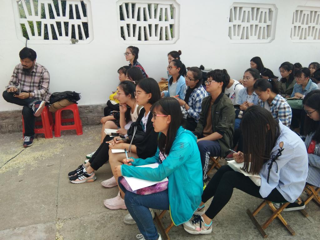 近日,我院中文系按照教学计划组织18级汉语言文学、汉语国际教育、秘书学、文秘四个专业进行了“创作写生”实践活动。中文系刘娟老师、梁汝海老师、魏松英老师、赵兴葆老师、王青老师、王艳老师6位老师担任此项实践教学活动的指导老师。山东作协会员著名诗人任真、记者王喜应邀参加此次活动。