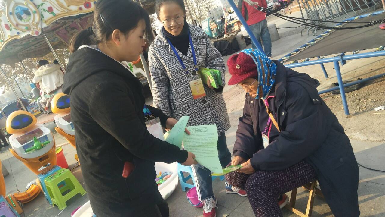 11月24日,我院青年志愿者协会的部分成员来到胜利广场,与东营市油城义工爱心协会的成员,共同开展了健康知识宣传活动。