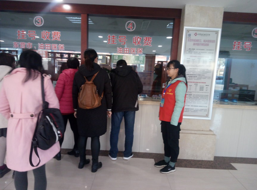 到达胜利中医医院后,志愿者们在油城义工志愿者的带领下,先参观了解医院相关工作,浏览门诊医生的出诊表,了解挂号的细节操作和自助缴费等相关事项。接着,分组负责各楼层,积极投入到服务活动中,耐心答复患者疑问,帮助患者解决问题,及时找到就医地点。