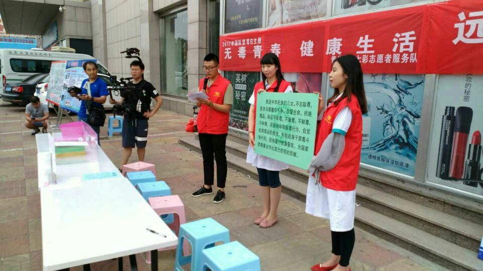 6月26日暨国际禁毒日,为提高居民禁毒防毒意识,营造全民禁毒的良好氛围,东营市公安局东营分局禁毒大队,东营市青华社区七彩志愿者、五老志愿者、青苗志愿者等以及东营市爱心公益共同在银座中心店门口开展了以禁毒为主题的科普宣传活动。我院法学会的法律志愿者们参加了此次活动。