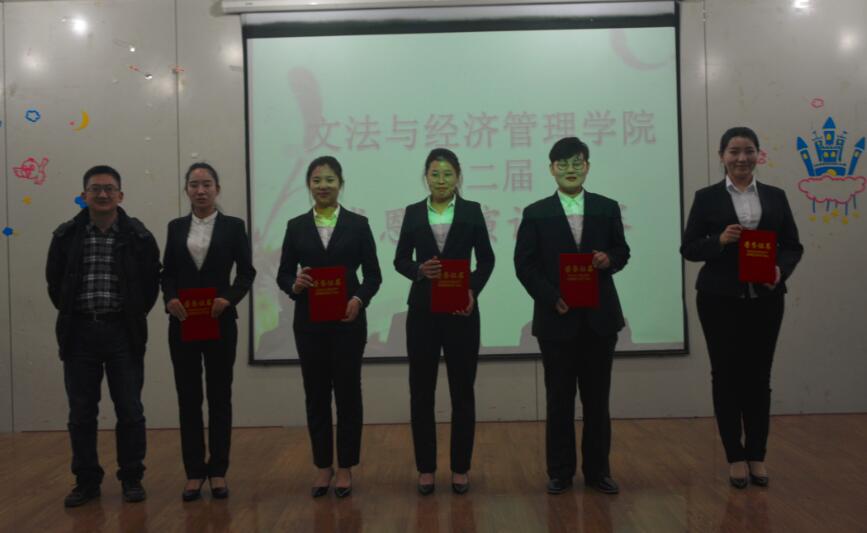 经过初赛、复赛的激烈角逐,10名选手脱颖而出进入在师专校区第一教学楼五楼报告厅举行的决赛。我院辅导员仝世涛、田旻、侯冠群、李昕如、李迎娣等老师,中文系主任刘娟老师,经济管理系魏超老师、孙万霞老师参加了本次活动并担任评委。