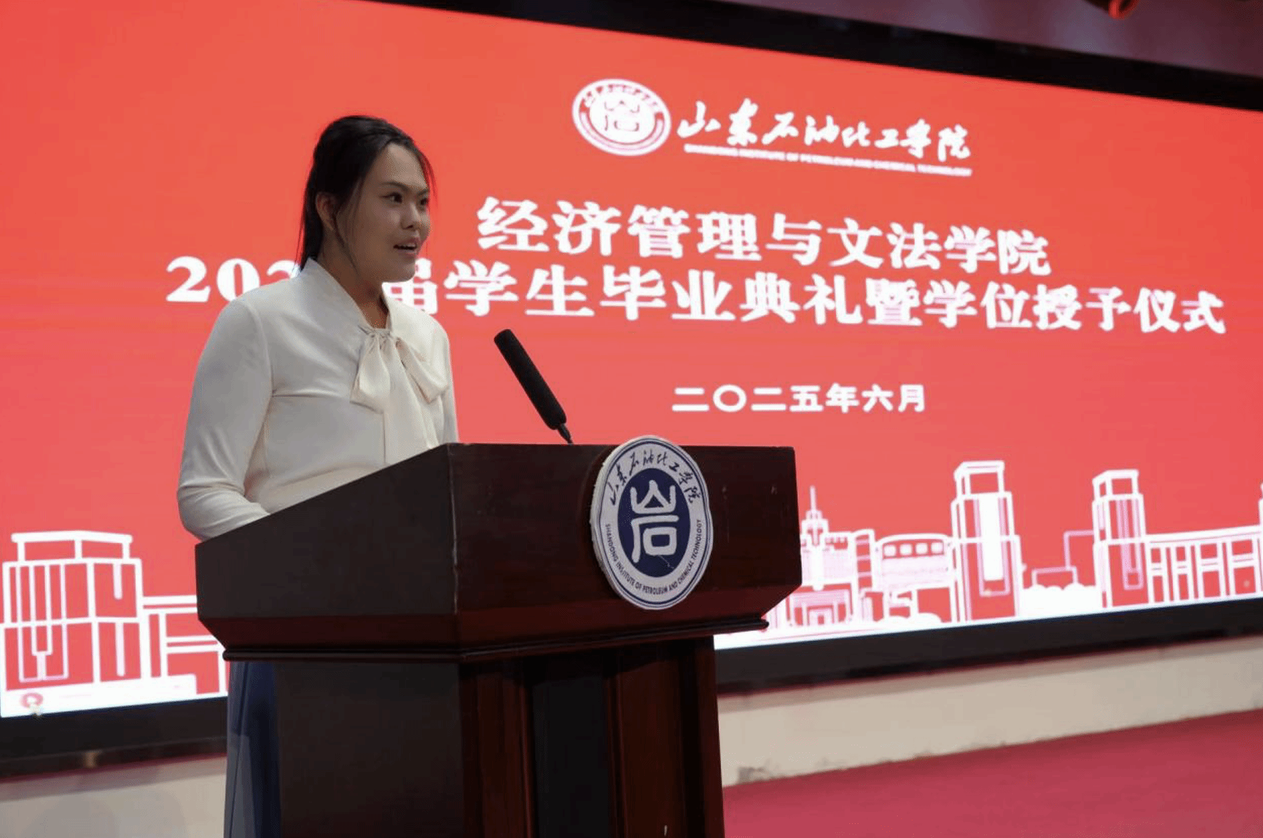 毕业生代表王睿同学深情回顾了四年的青葱岁月,向辛勤培育的母校和恩师表达了最诚挚的感谢。她承诺将带着初心与嘱托,勇毅前行,让梦想在人生的广阔天地中绽放光芒。