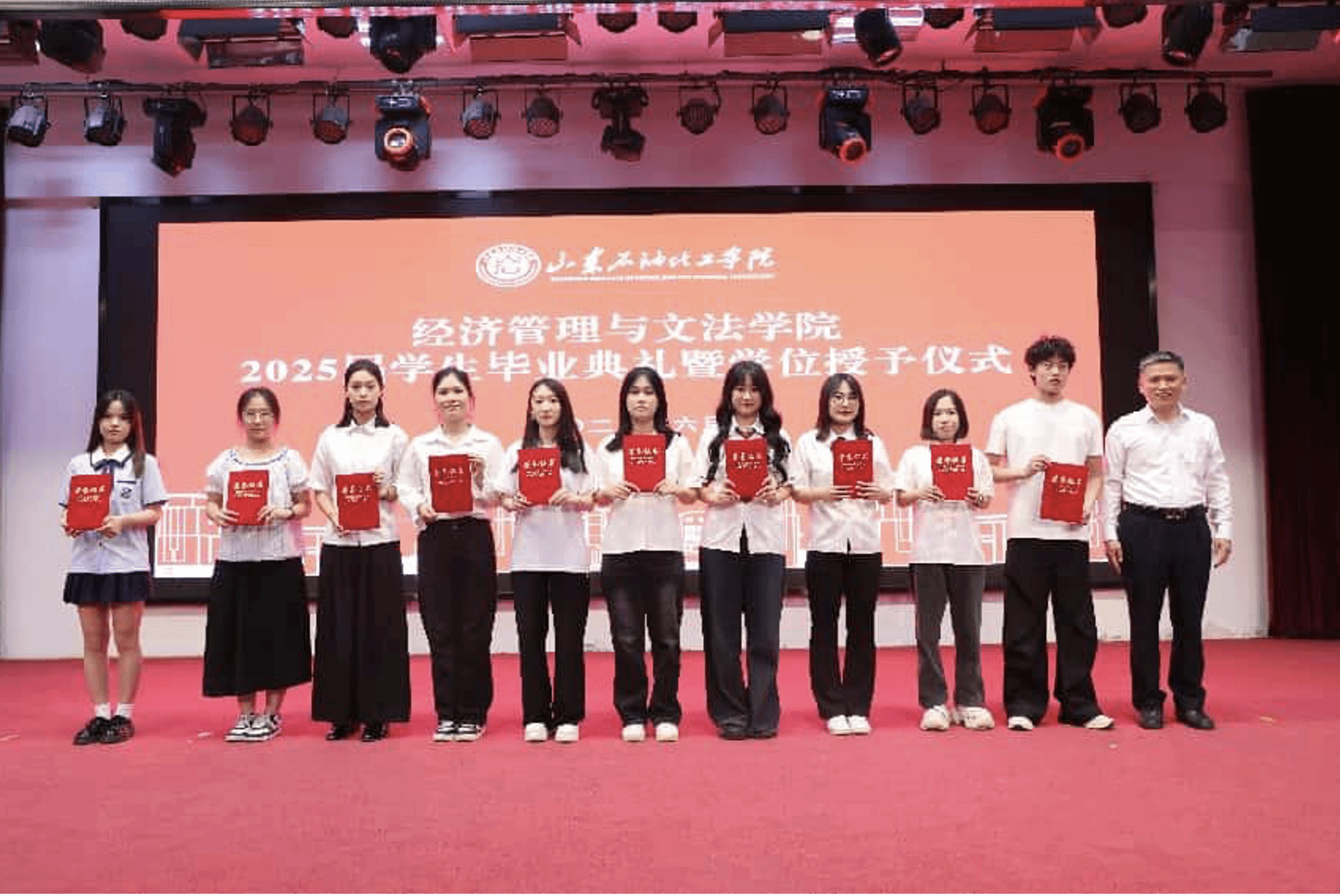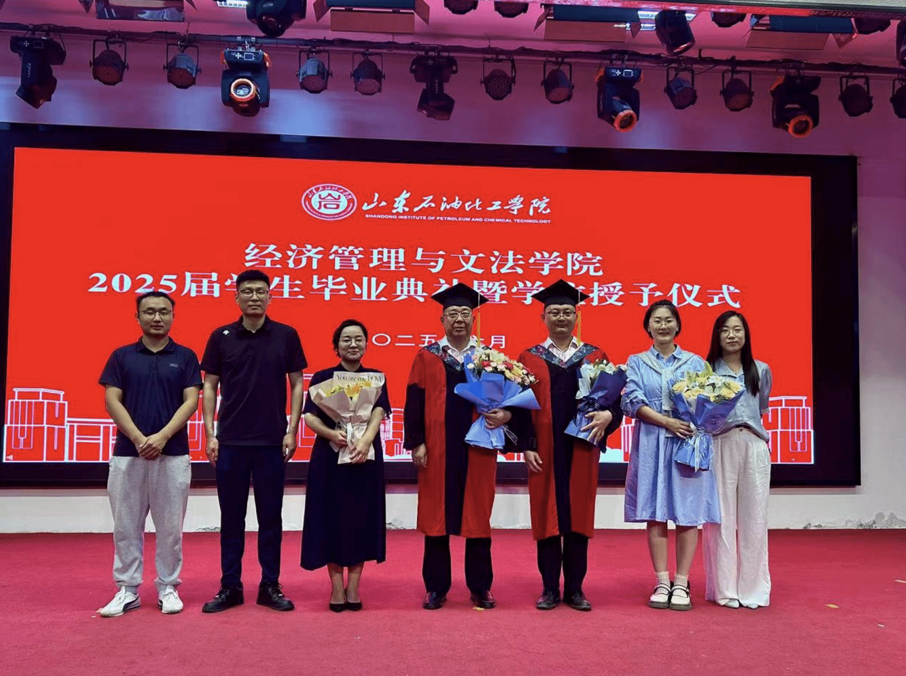 6月17日下午,经济管理与文法学院2025届毕业典礼暨学位授予仪式在100号学术报告厅盛大举行。学院党总支副书记、副院长薛德枢,党总支副书记代立军,副院长王家明,副院长张朋程,辅导员、教师代表以及2025届的毕业生们共同出席了这一典礼。典礼由院长助理毕菲菲主持。