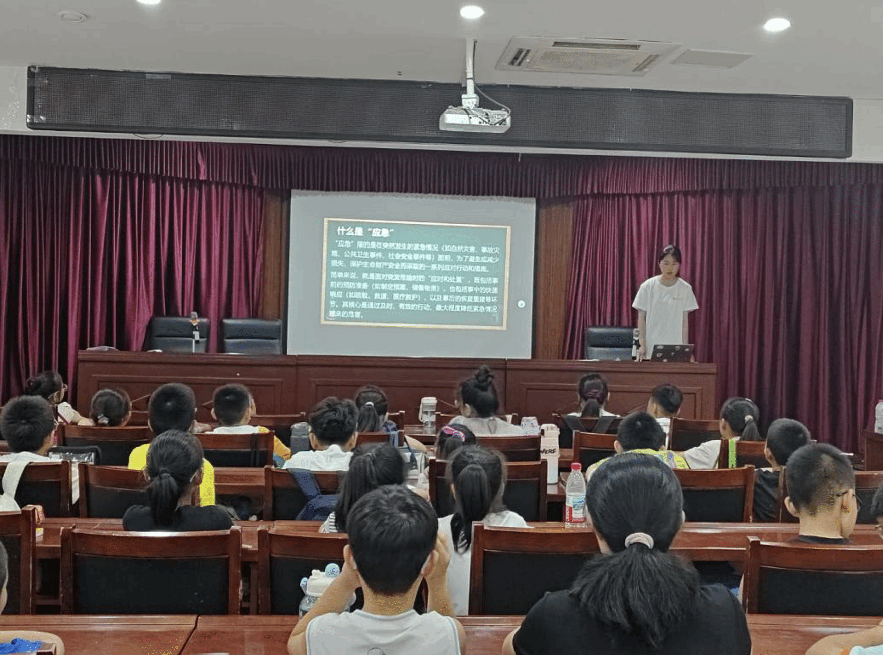 正值盛夏,溺水事故进入高发期。蓝风铃实践队成员们深知社区水域众多、监管力量相对薄弱,防溺水教育刻不容缓。我们精心策划,通过情景模拟、案例警示、互动问答、趣味动画等多种形式,向孩子们深入浅出地讲解溺水的危险性和正确的自救方式。蓝风铃实践队还针对乡村常见的意外伤害,系统开展了“应急处理知识与技能培训”,结合生活实际,讲解突发状况的正确处理方式,显著提升了孩子们的安全意识。