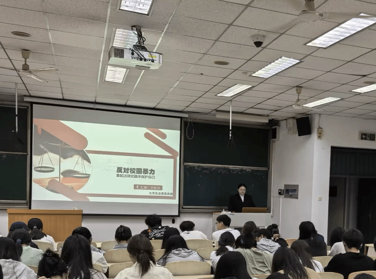 为切实增强大学生对校园暴力的防范意识,提升对游戏沉迷危害的认知,引导学生树立健康的生活与娱乐观念,2025年9月16日,学院大学生法律宣讲团在第四教学楼102教室,面向学院全体同学们开展了以“防校园暴力、防游戏沉迷”为主题的法律宣讲活动。于秋月和赵庆起担任主讲。